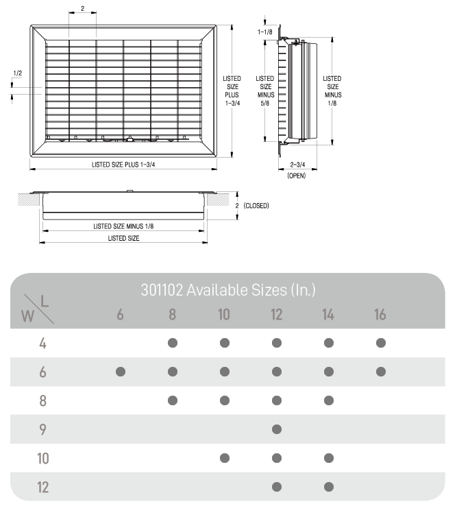 - Duct Opening SizeWidth 4-12in; Length 6-16in