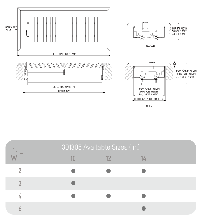 - DimensionDuct Opening Width 10-14in; Height 2-6in