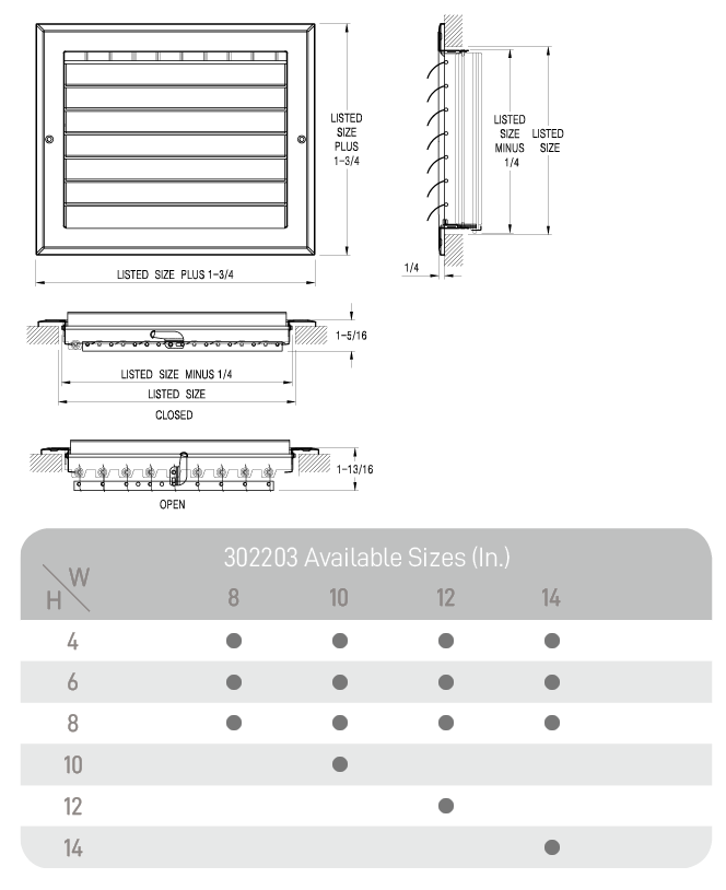 - Duct Opening SizeWidth 8-14in; Height 4-14in