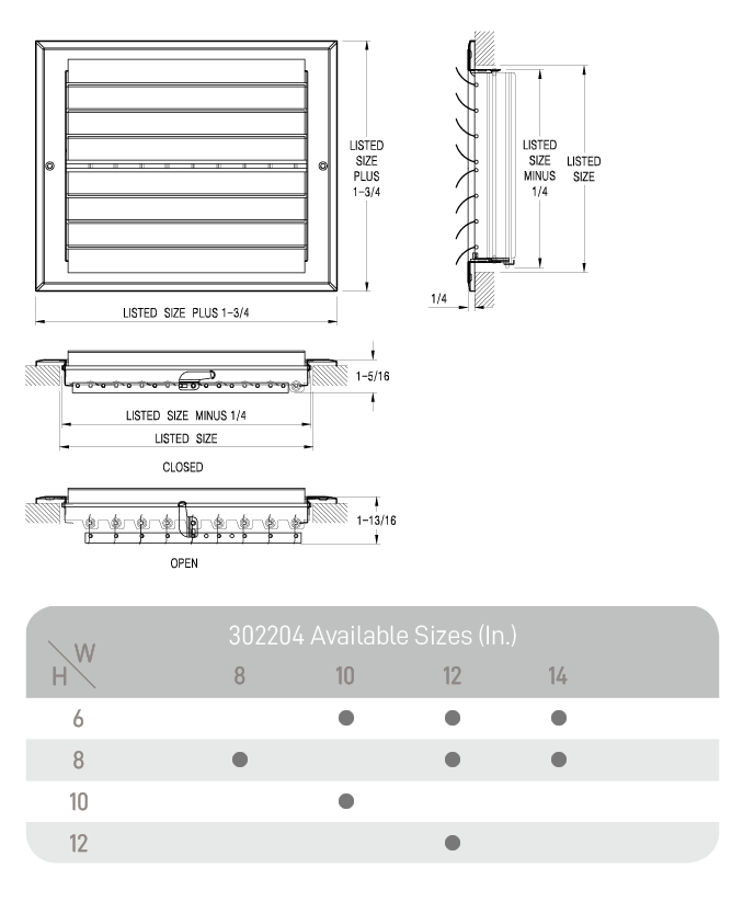 - Duct Opening SizeWidth 8-14in; Height 6-12in