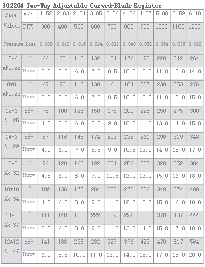 302204 Aluminum Curved-Blade Adjustable Register 2-Way
