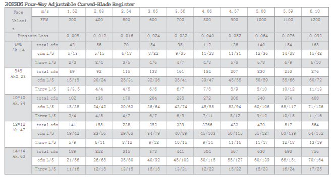 302206 Aluminum Curved-Blade Adjustable Register 4-Way