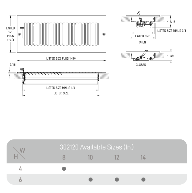 - Duct Opening SizeWidth 8-14in; Height 4-6in
