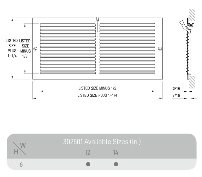 - Duct Opening SizeWidth 12-14in; Height 6in