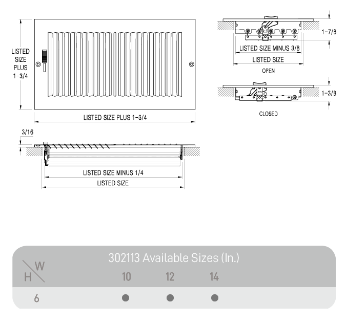 - Duct Opening SizeWidth 10-14in; Height 6in