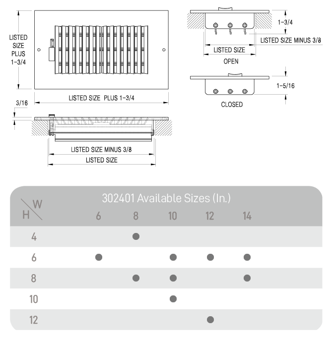 - Duct Opening SizeWidth 6-14in; Height 4-12in