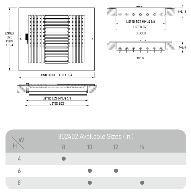 - Duct Opening SizeWidth 8-14in; Height 4-8in