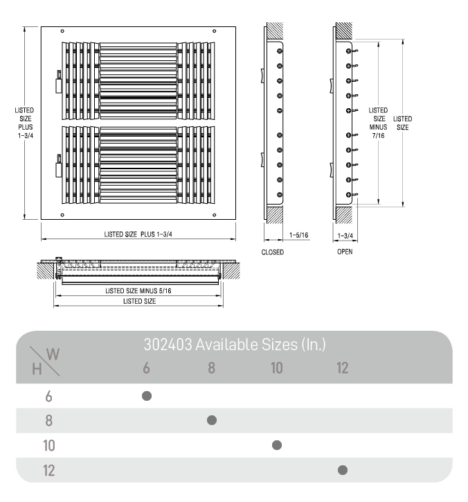- Duct Opening SizeWidth 6-12in; Height 6-12in