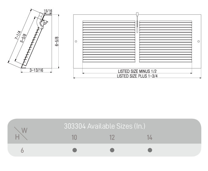 - Duct Opening SizeDuct Opening Width 10-14in; Height 6in
