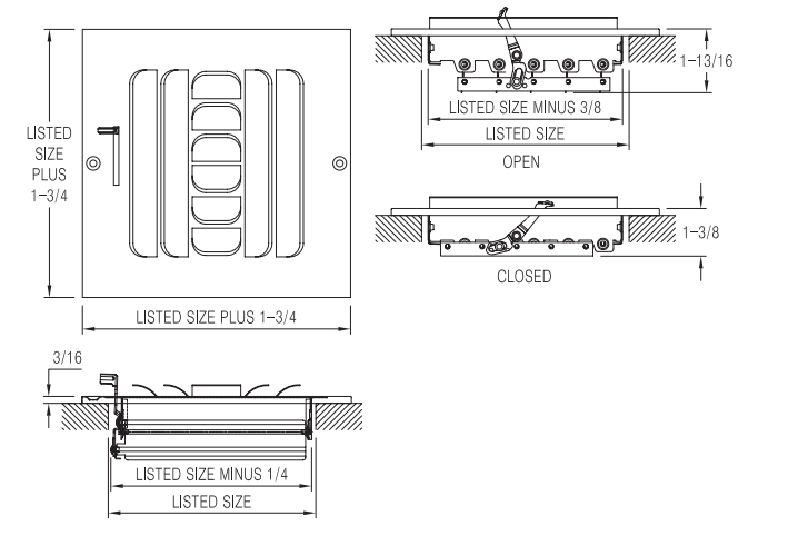 - Duct Opening SizeWidth 6-14in; Height 6-14in