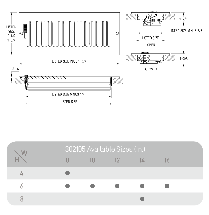 - Duct Opening SizeWidth 8-16in; Height 4-8in